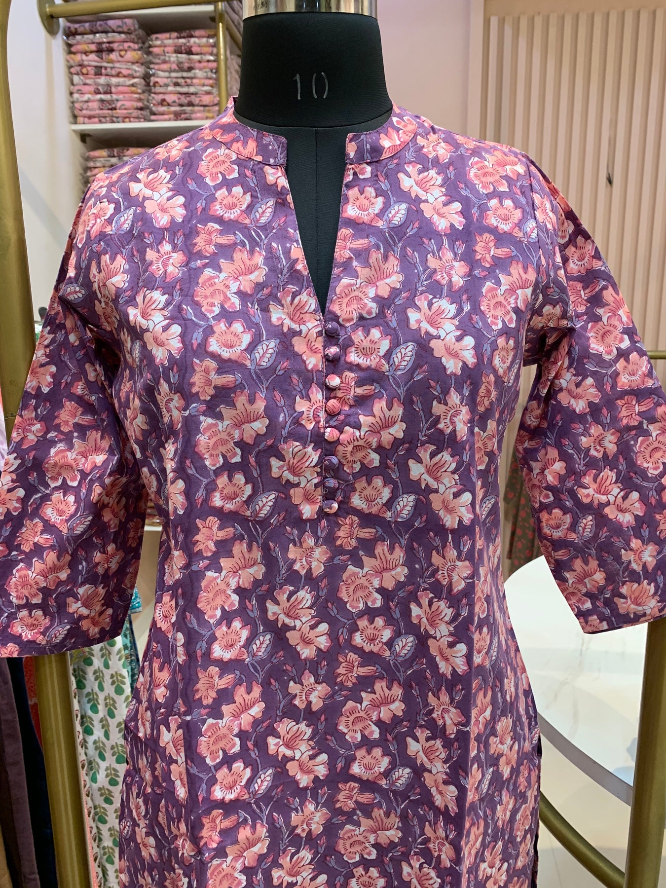 Minimal, classic and chic, this kurta is designed for all the days you want to keep things special and subtle. Inspired by the art of Hand Block Printing, this kurta is a piece of art. The kurta comes with a unique print that gives an elevated touch to its royal colour and pure cotton fabric.