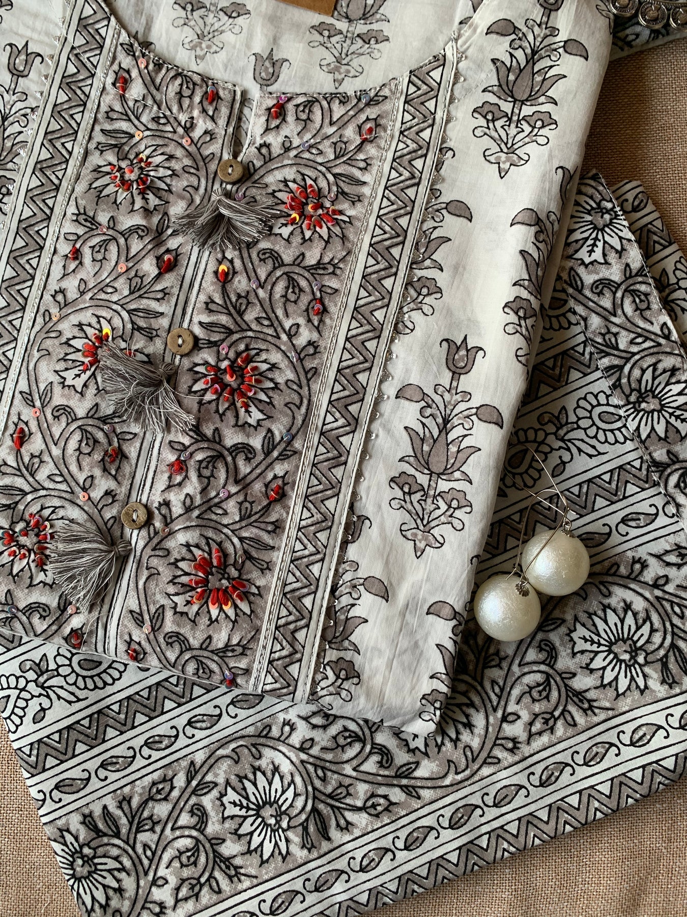 "Nigra" White Black Kurta Pant Set - 3 pc